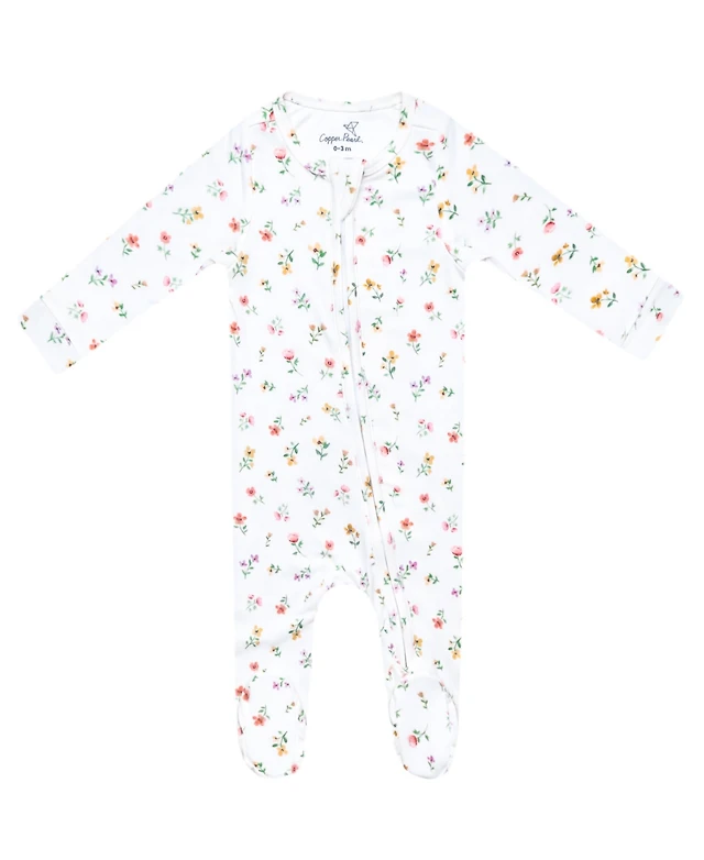 Copper Pearl Baby Girls' Natalie Printed Zip-Up Footed Pajamas