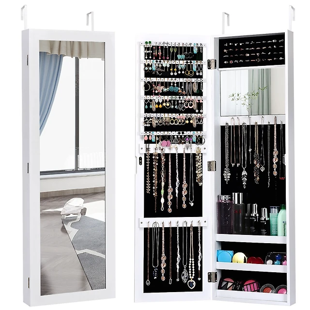Costway Wall Door Mounted Mirror Jewelry Cabinet Organizer