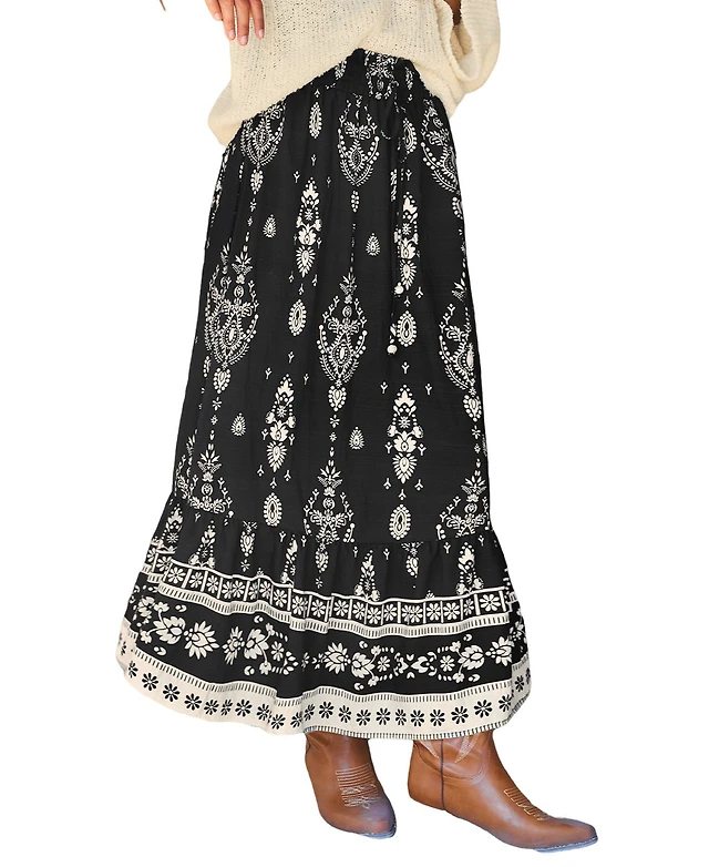 Cupshe Women's Plaid Ruffled Maxi Skirt.