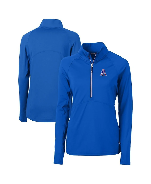 Cutter & Buck Men's Blue Detroit Lions Helmet Traverse Stretch Quarter-Zip Pullover Top