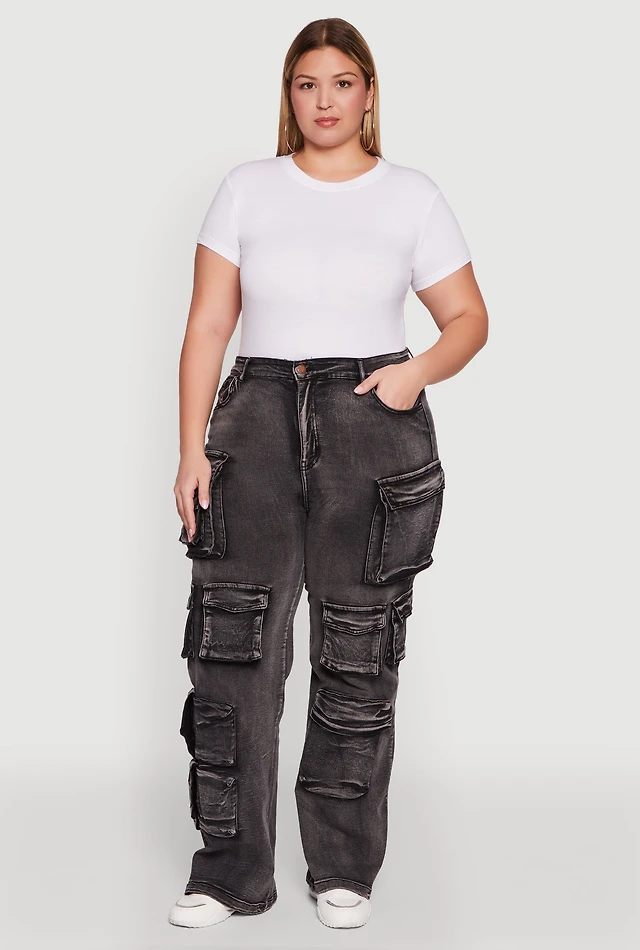 Plus Mineral Wash Straight Leg Cargo Jeans