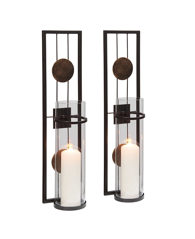 Danya B. Metal Pillar Candle Sconces with Glass Inserts - Set of 2