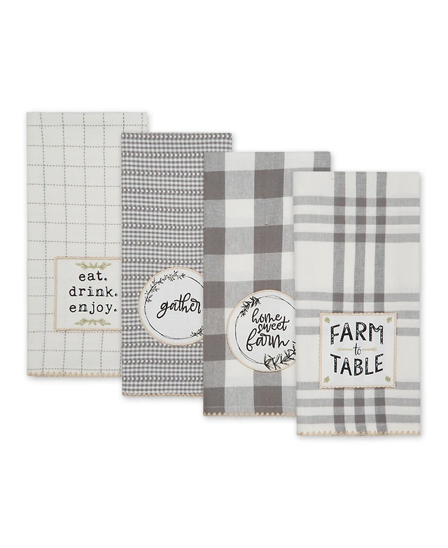 Design Imports Assorted Woven Dishtowel Collection Classic Oversized, 20x28", Black, 5 Piece
