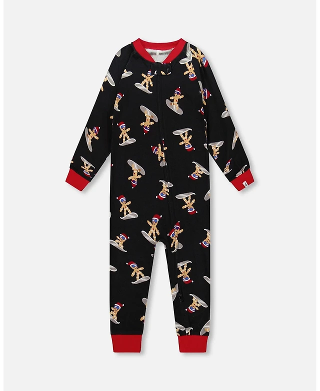 Deux par Deux Boy Cotton Interlock One-Piece Pajama Black Cookie Print