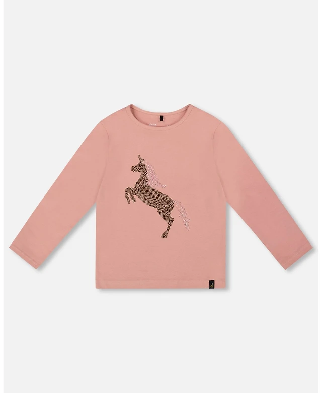 Deux par Girl Cotton Long Sleeve T-Shirt Dusty Pink with Sequin Unicorn - Toddler|Child