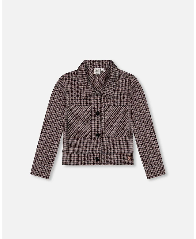Deux par Toddler Girls Jacquard Knit Jacket with Houndstooth Pattern - Toddler|Child