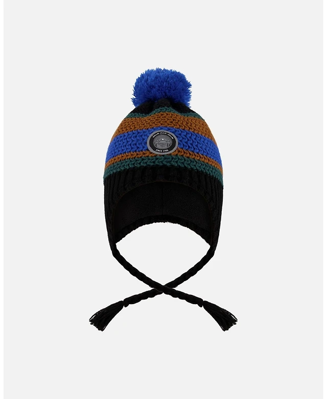 Deux par Boy Lined Peruvian Knit Pompom Hat Black, Blue and Brown - Toddler|Child