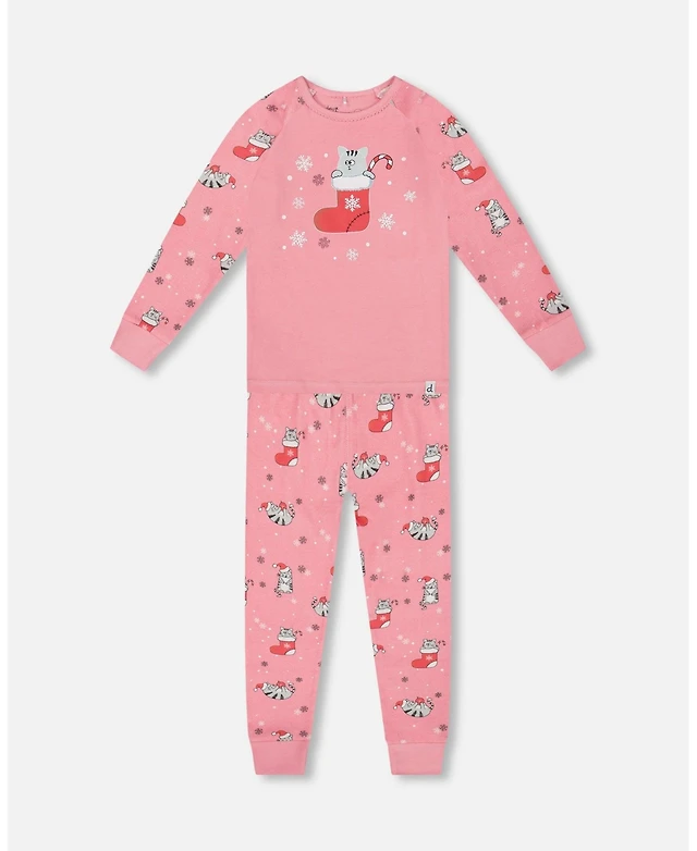 Deux par Girl Cotton Two-Piece Pajamas Beige Girly Reindeer Print