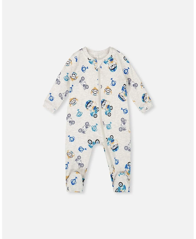 Deux par Baby Boy Cotton One-Piece and Romper Blue Bear Print