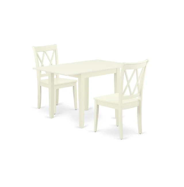 East West Furniture 3 Piece Modern Dining Table Set Contains 1 Drop Leaves Dining Table and 2 Linen White Dining Chairs with Slatted Back