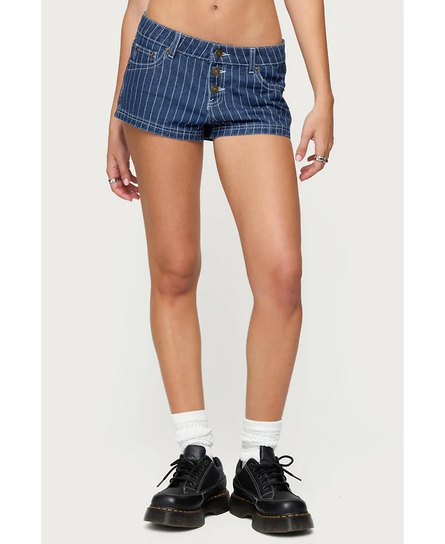Edikted Women's Hanson Pinstripe Denim Shorts