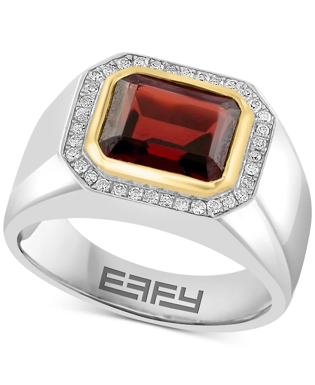 Effy Men's Garnet (4-1/10 ct. t.w.) & Diamond (1/6 ct. t.w.) Ring in Sterling Silver & 14k Gold-Plate
