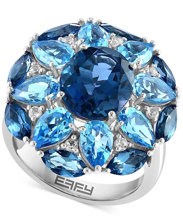 Effy London Blue Topaz (4-1/5 ct. t.w.) & Diamond (1/8 ct. t.w.) Halo Statement Ring in 14k Gold