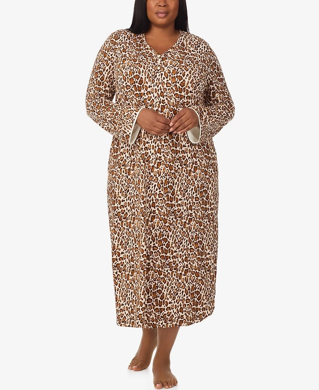 Ellen Tracy Plus Size Printed V-Neck Long Gown with Socks