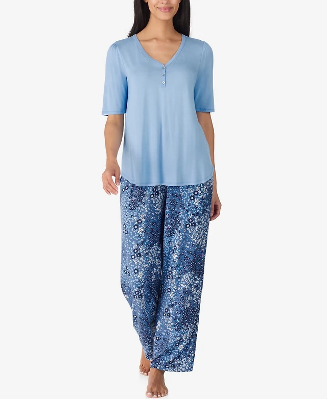 Ellen Tracy Women's Cap-Sleeve Top and Cropped Pajama Pants, 2-Piece Set