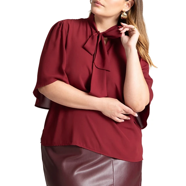 Eloquii Women's Plus Printed Tie Neck Blouse