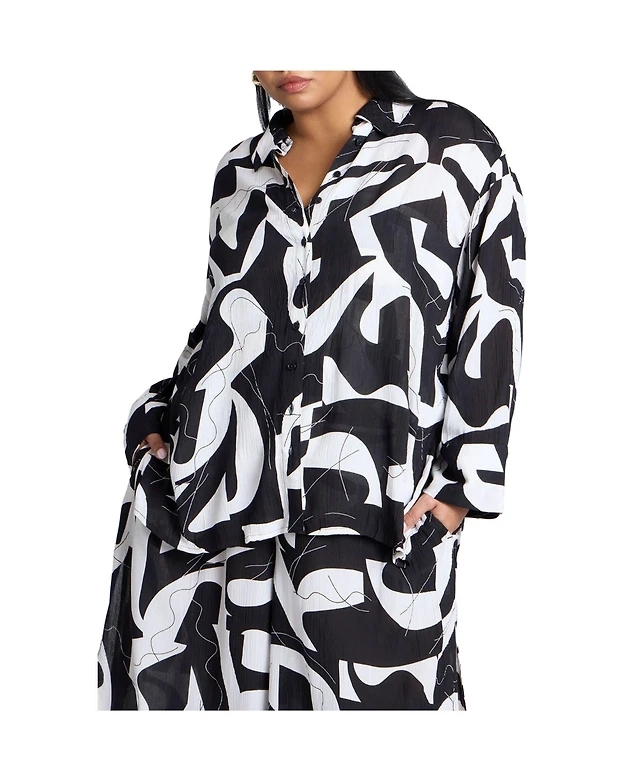 Eloquii Women's Plus Printed Kimono Dress With Tie
