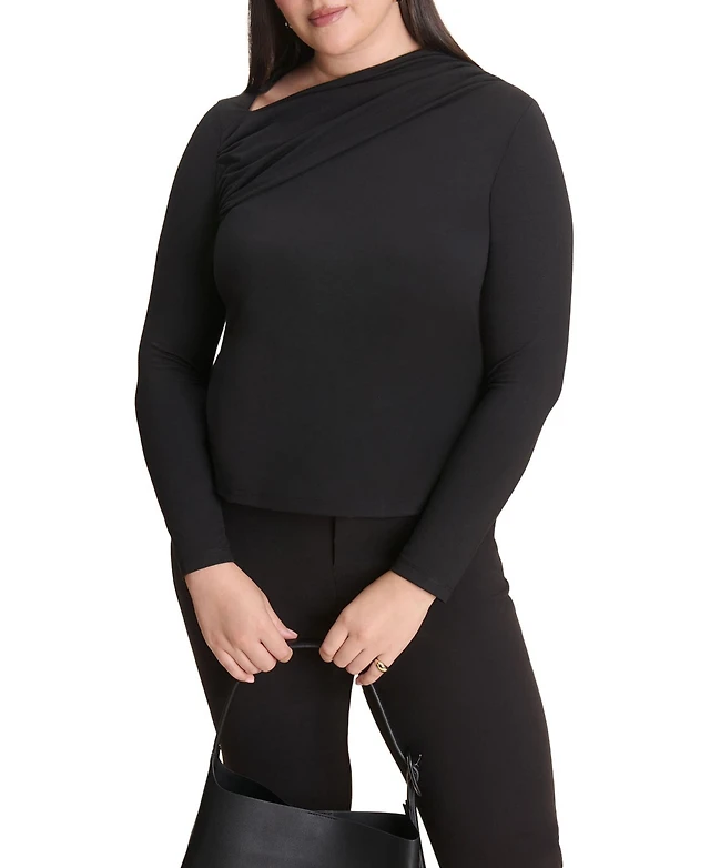 Eloquii Women's Plus Size Drapey Faux Leather Mini Dress