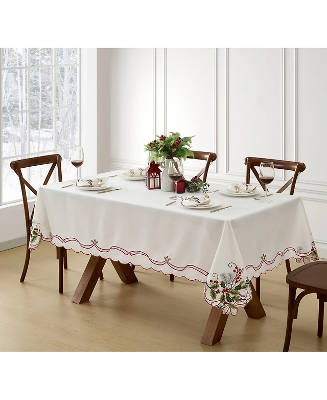 Elrene Holly Ribbon Embroidered Cutwork Fabric Tablecloth
