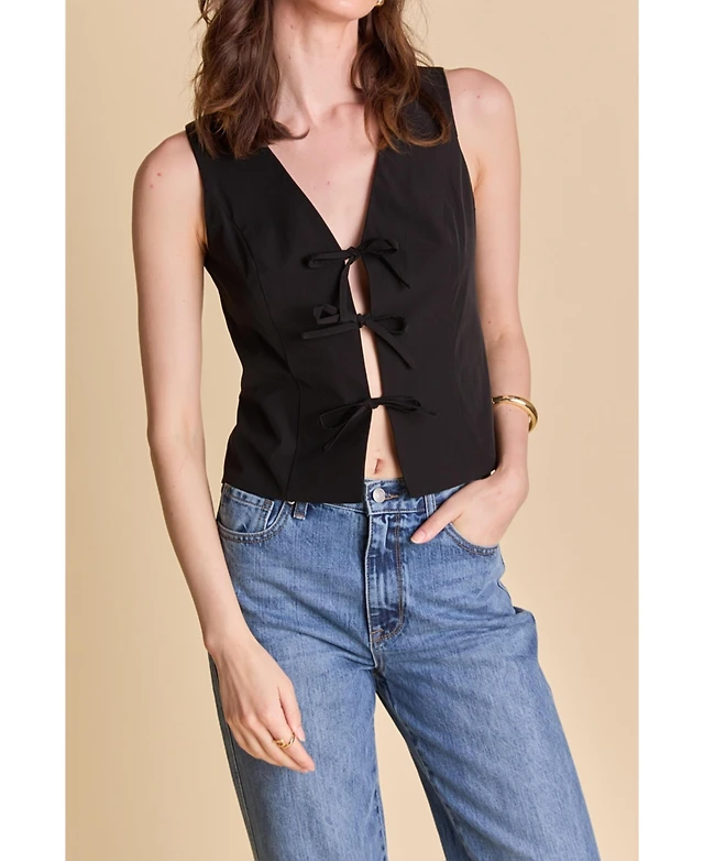 endless rose Women's Tweed Buttoned Scoop Neck Vest