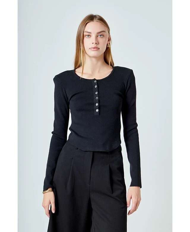 endless rose Women's Knit Jewel Trim Collared Sweater