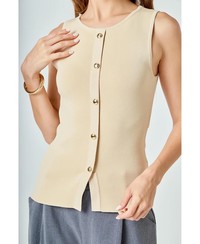 endless rose Women's Knit Buttoned Sleeveless Top
