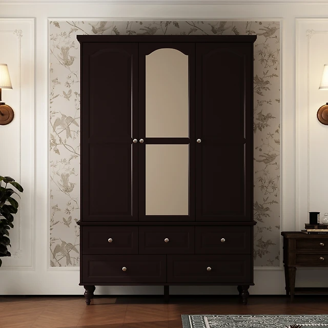 Famapy Brown Paint Big Wardrobe Armoires With Mirror,Drawers,Shelves