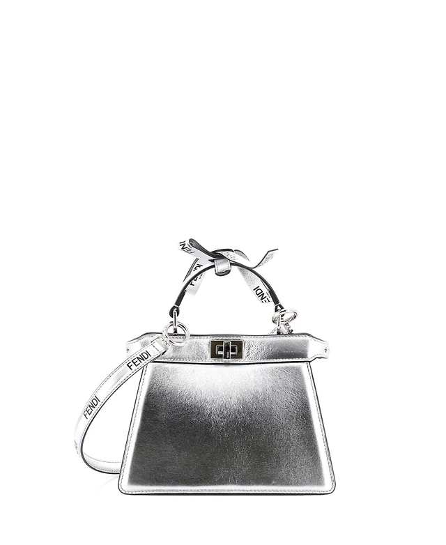 Pre-Owned Fendi Mini Ff Logo Peekaboo Bag Leather with Applique