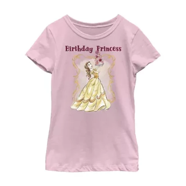 Disney Little & Big Kid Girls Crew Neck Short Sleeve Regular Fit Belle Graphic T-Shirt