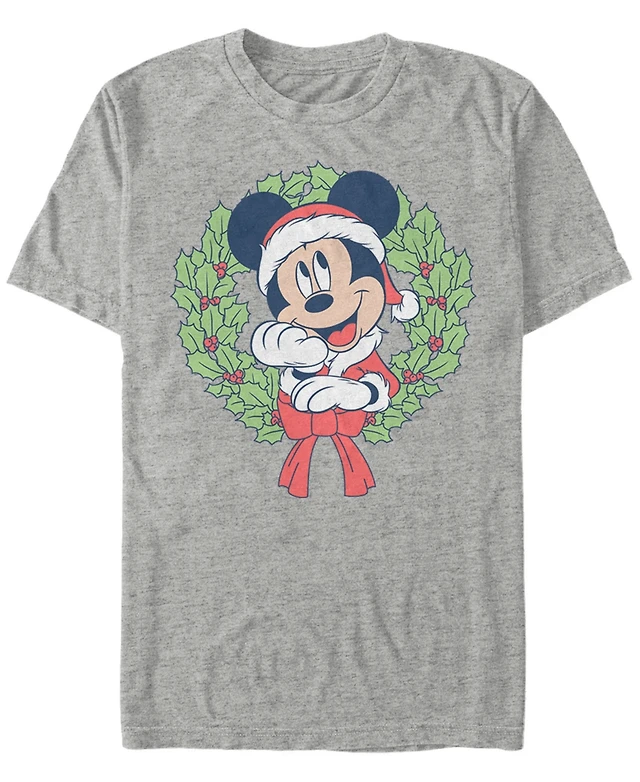 Fifth Sun Men's Mickey Classic Christmas Wreath Short Sleeves T-shirt