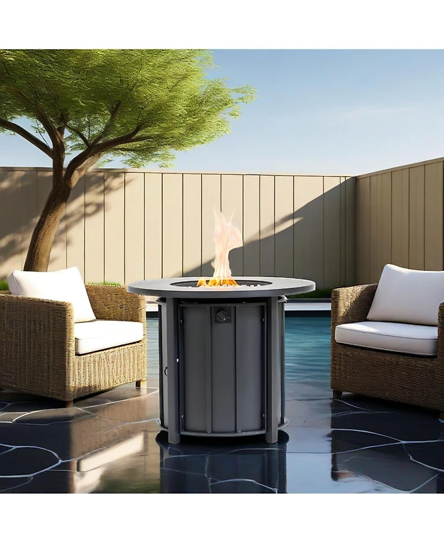 Flynama 30 Inch W 25 Inch H Steel Outdoor Fire Pit Table with Lid Smoked Glass Top Push Button Ignition Propane Natural Gas