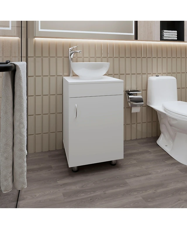 Fm Furniture White Bathroom Floating Vanity with Sink, 1 Door,
