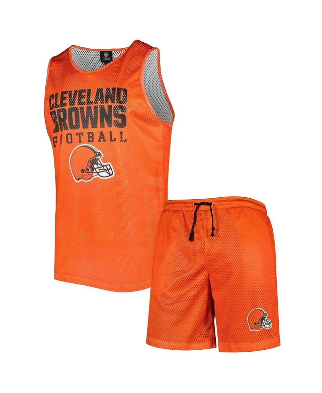 Men's Foco Orange Cleveland Browns Colorblock Mesh Sleeveless Shirt and Shorts Set