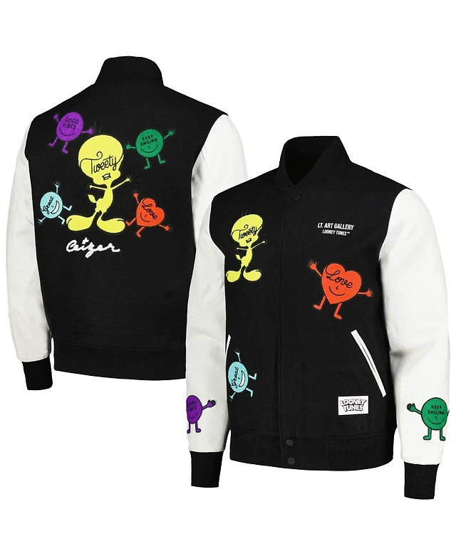 Men's Freeze Max Black, White Looney Tunes Positive Energy Tweety Bird Full-Zip Varsity Jacket