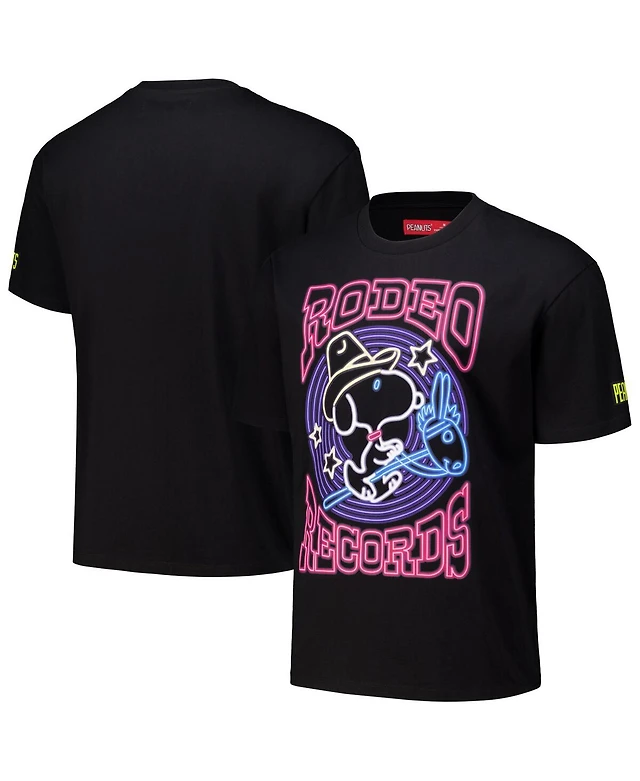 Freeze Max Men's Black Peanuts Snoopy Rodeo Loose Fit T-Shirt