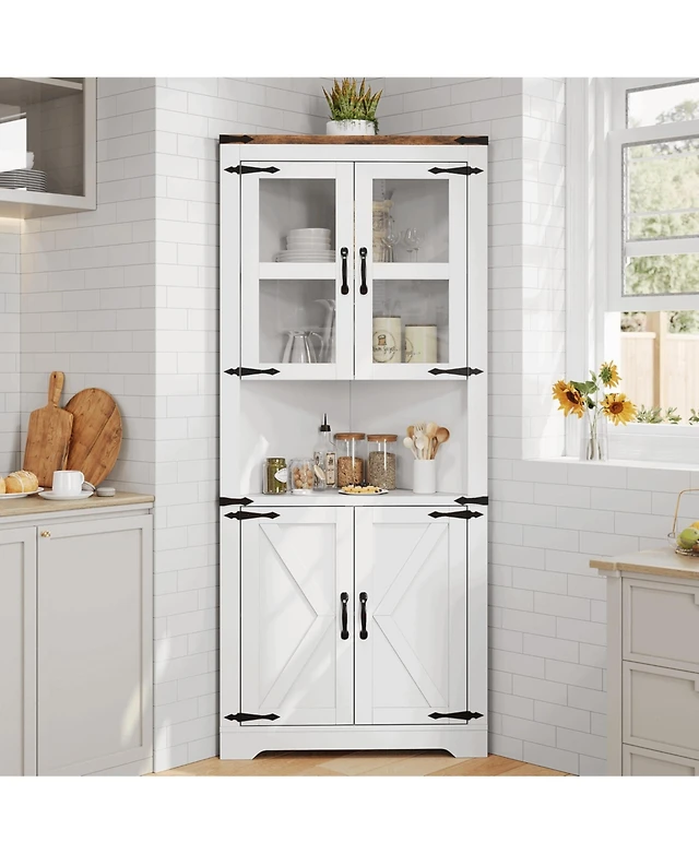 gaomon Farmhouse Tv Stand for 70" TVs, Mid-Century Console with Glass Door, 2 Doors, 3 Drawers and Shelves