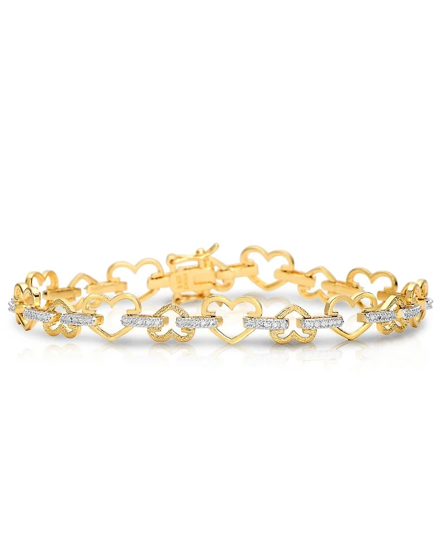 Gleaming Gold-Plated Heart Bracelet with Cubic Zirconia