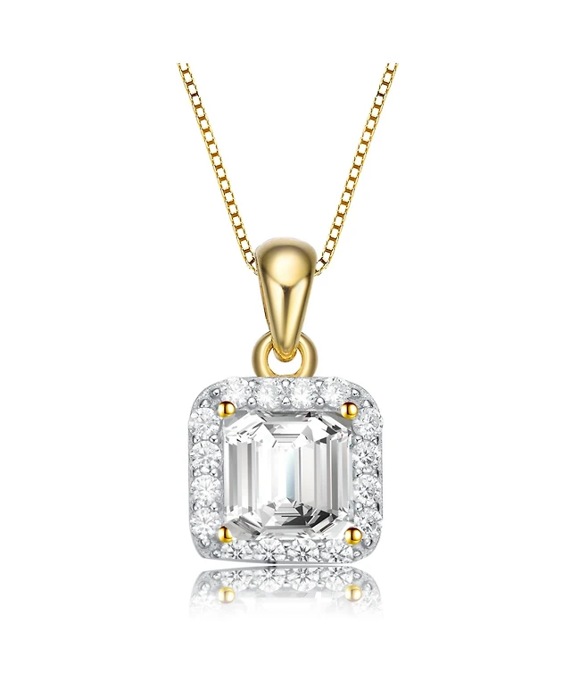Sterling Silver White Gold Plating Cubic Zirconia Asscher Cut Drop Pendant