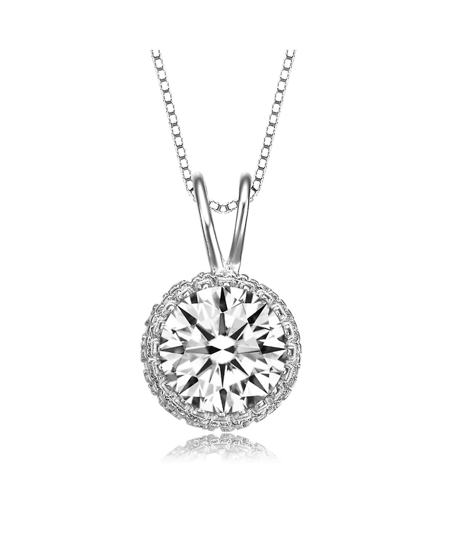 Sterling Silver Round-cut Cubic Zirconia Stud Pendant Necklace