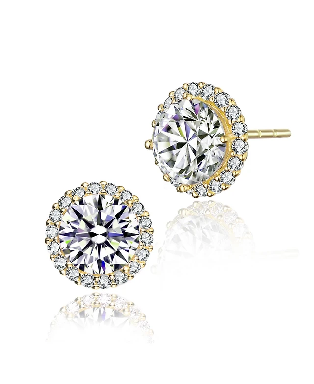 Cubic Zirconia Sterling Silver round Haloed Stud Earrings