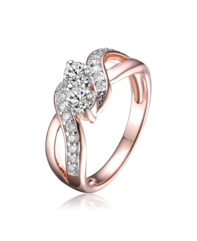 Gv Sterling Silver White Gold Plated Clear Round Cubic Zirconia Open Pear Drop Earrings