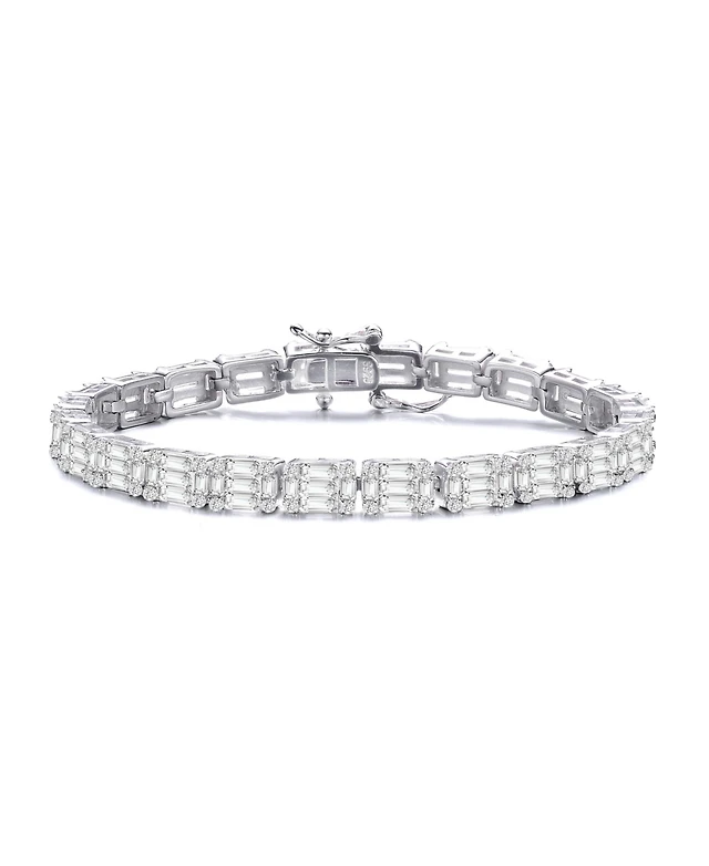 Stylish Sterling Silver with White Gold Plated Clear Round Cubic Zirconia Milgrain Bezel Tennis Bracelet