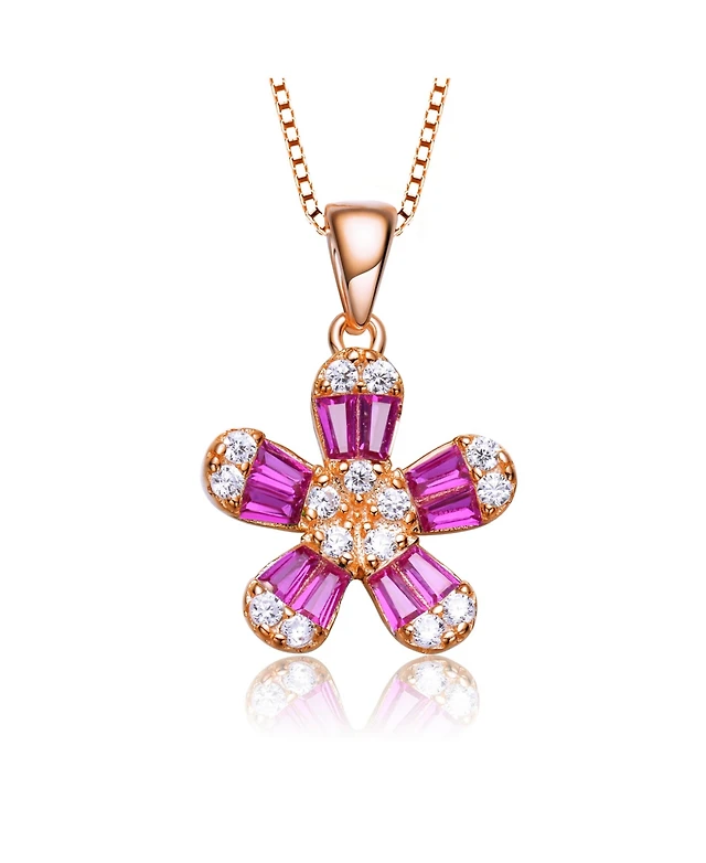Sterling Silver 14K Gold Plated Lovely Red and Clear Cubic Zirconia Necklace