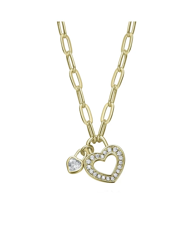GiGiGirl 14K Gold Plated with Colored Cubic Zirconia Paperclip Chain Heart Lock Pendant Necklace