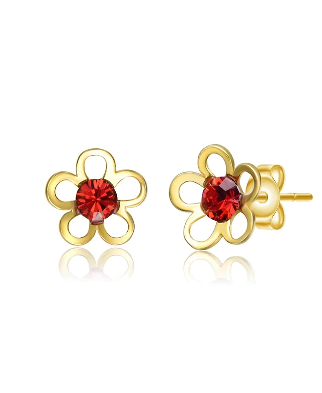 GiGiGirl Sterling Silver 14K Gold Plated Red Cubic Zirconia Open Heart Halo Stud Earrings