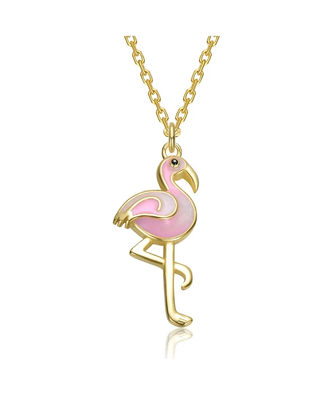 GiGiGirl 14K Gold Plated with Pink & White Enamel Flamingo Pendant Necklace