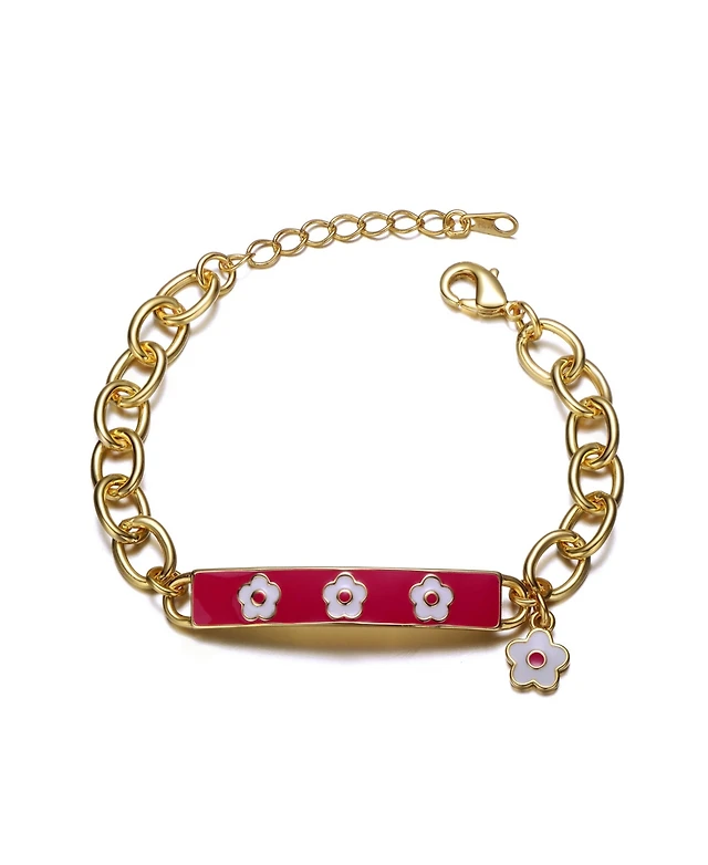 GiGiGirl 14k Yellow Gold Plated with Red Enamel Heart and pearl Dangle Charm Bracelet for Toddler/Kids