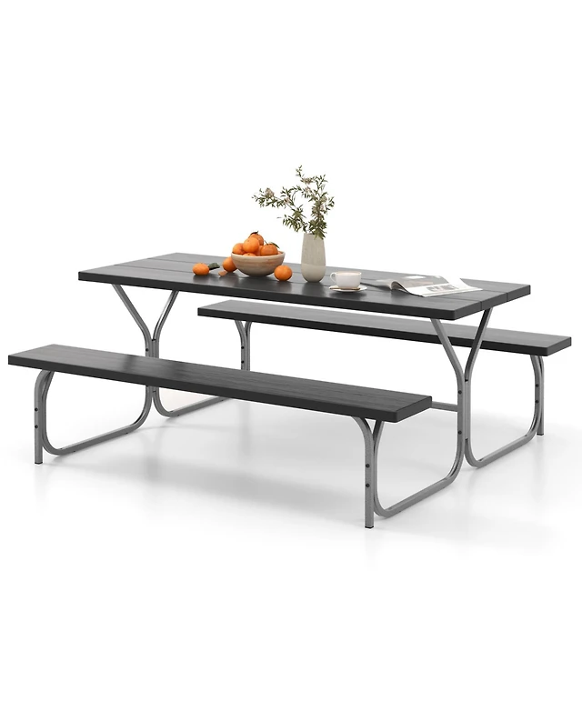 Gouun Patio Dining Bench Backless with Slatted Seat and Metal Legs