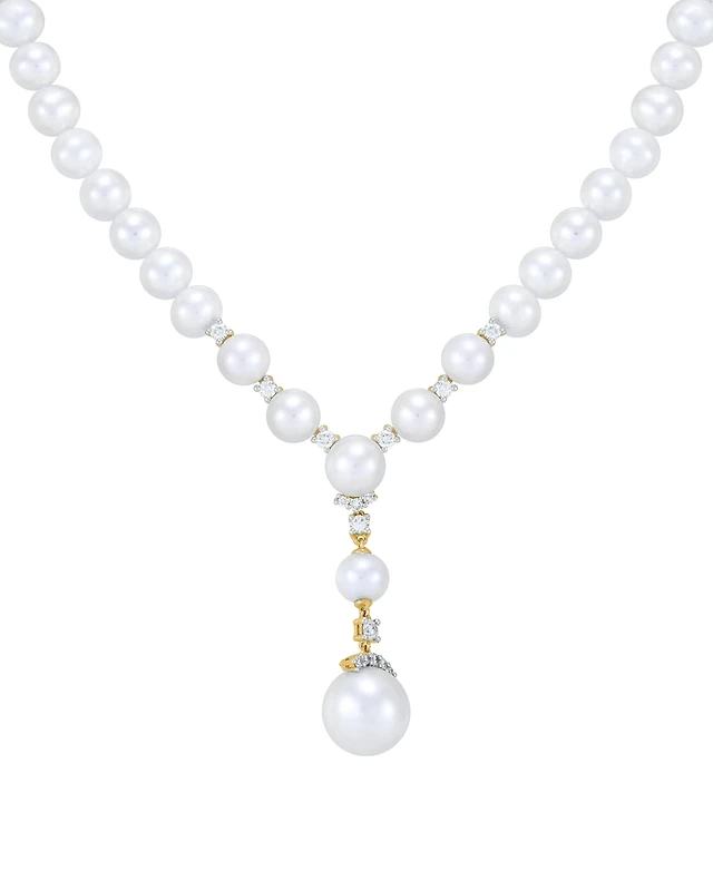 Grown With Love Cultured Freshwater Pearl (7 & 10-1/2mm) & Lab Grown Diamond (3/8 ct. t.w.) Double Drop Earrings in 14k Gold