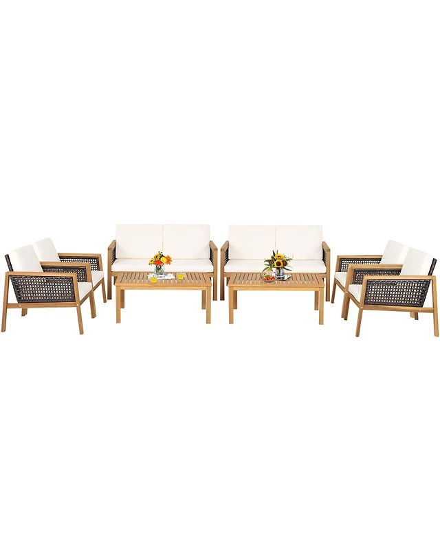 Gymax 8 Piece Patio Conversation Set Acacia Wood Sofa w/ Cushions & Coffee Table